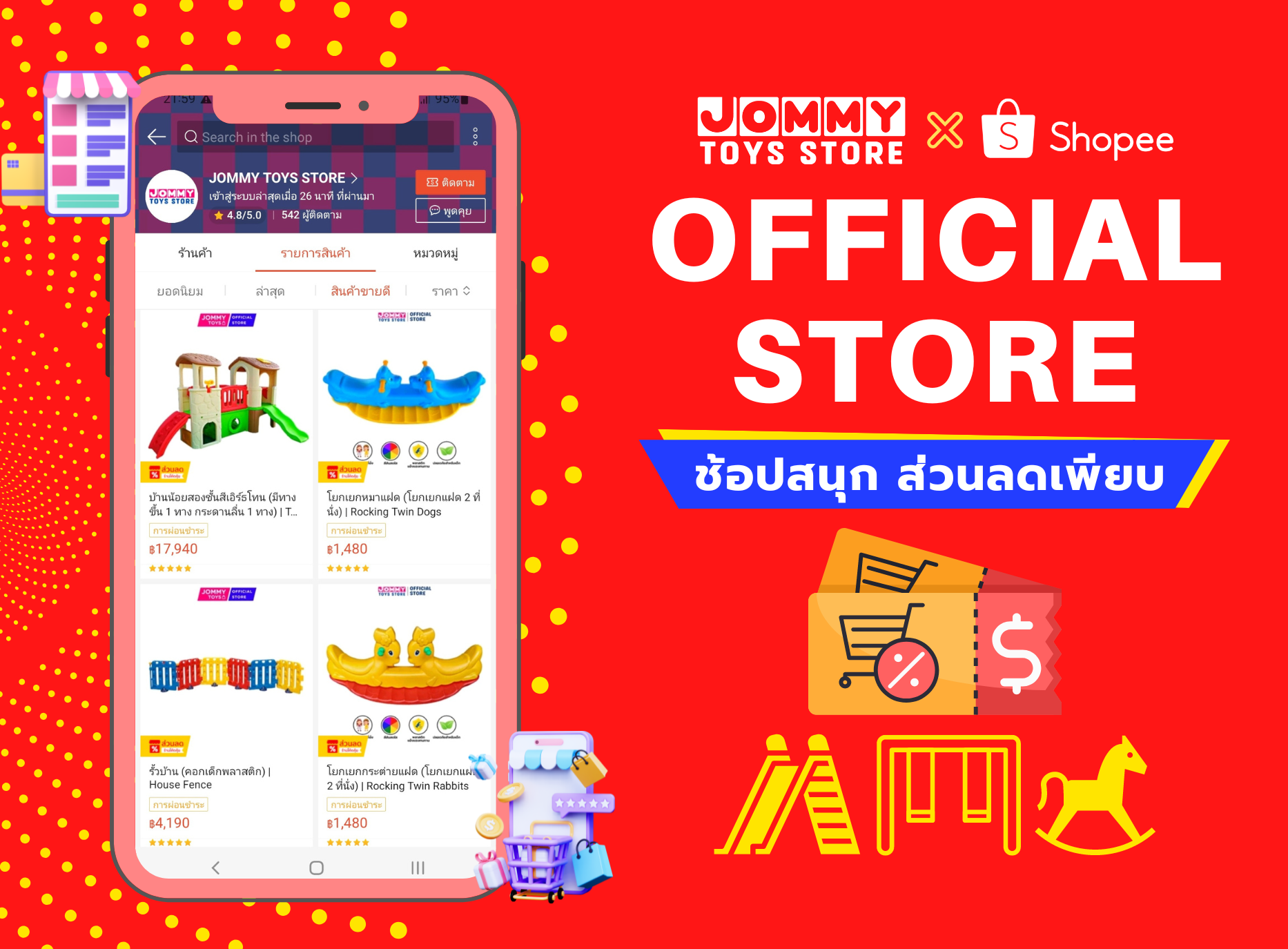 ศูนย์รวมของเล่นเด็ก เฟอร์นิเจอร์สำหรับเด็ก เครื่องเล่นสนามกลางเเจ้ง เครื่องเล่นเด็กในร่ม เครื่องออกกำลังกาย วัสดุปูพื้น ยินดีต้อนรับสู่ศูนย์รวมของเล่นเด็ก เฟอร์นิเจอร์สำหรับเด็ก เครื่องเล่นสนามกลางเเจ้ง เครื่องเล่นเด็กในร่ม เครื่องออกกำลังกาย วัสดุปูพื้น ที่ครบครันมากที่สุด จอมมี่ทอยส์สโตร์ JOMMY TOYS STORE ก่อตั้งขึ้นเมื่อวันที่ 24 มีนาคม พ.ศ. 2565 ด้วยเเนวคิดการทำให้ที่นี้เป็นศูนย์รวมของเล่นสำหรับเด็กๆ เรายินดีให้บริการทุกท่านเสมอ